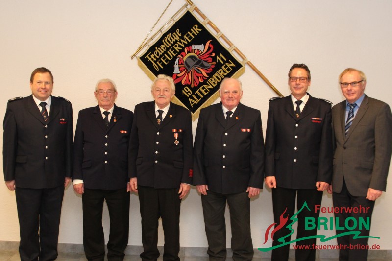 Auch nicht alltägliche Ehrungen standen auf der Agenda. Den Mitgliedern der Ehrenabteilung Antonius Aufmkolk, Karl Hohmann und Josef Göke wurde die Sonderauszeichnung in Gold für 60-jährige Mitgliedschaft des Verbandes der Feuerwehren NRW durch Wehrführer Wolfgang Hillebrand verliehen.