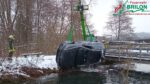 Dadurch endete die Fahrt der jungen Frau im Flussbett. Der PKW versank zu Dreivierteln im Wasser. Glücklicherweise waren die Fensterscheiben während der Suche geöffnet und die Fahrerin konnte das Fahrzeug selbstständig verlassen. Die Feuerwehr betreute die junge Dame und unterstützte die Polizei bei der Unfallaufnahme. Neben Polizei und Feuerwehr wurde die untere Wasserbehörde zur Einsatzstelle bestellt, um sicherzustellen, dass keine Gefahr durch auslaufende Betriebsmittel für das fließende Gewässer bestand. Einige Feuerwehrkräfte unterstützten die Bergung des Fahrzeuges. Das Fahrzeug wurde durch ein Privatunternehmen aus dem Wasser gehoben.