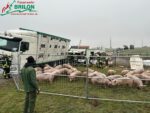 Im weiteren Verlauf wurde ein Zaungehege aufgebaut und der umgekippte Anhänger belüftet. Um die Tiere zu retten, öffnete die Feuerwehr den Anhänger von mehreren Seiten und schnitt Teile des Daches auf. Insgesamt konnten 70 Schweine lebend aus dem umgekippten Anhänger gerettet und im Zaunbereich betreut werden. Leider musste ein Teil der Tiere später eingeschläfert werden, da sie nicht mehr transportfähig waren, ein Schwein verendete an der Einsatzstelle. Das Veterinäramt war auf Veranlassung der Polizei an der Einsatzstelle eingebunden.