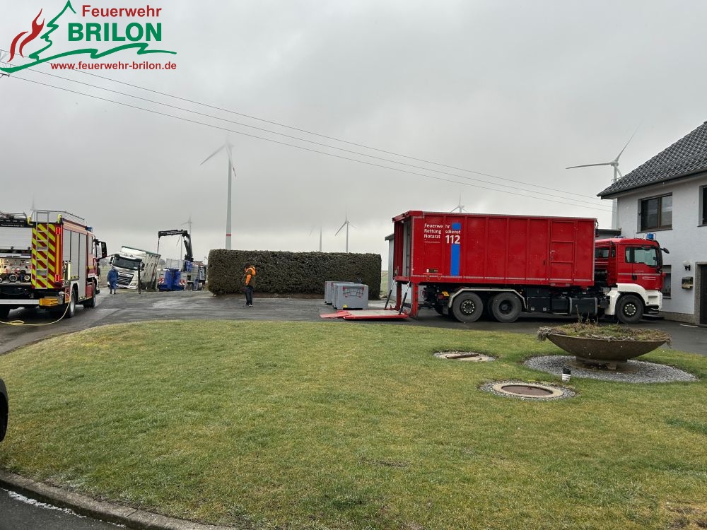 Die Feuerwehr sicherte die Einsatzstelle und streute die Fahrbahn aufgrund von Glatteis mit Salz ab. Zudem wurde das Gespann stabilisiert, um weitere Gefahren zu vermeiden. Der Fahrer blieb unverletzt, stand jedoch unter Schock. Rettungsdienst und Polizei waren vor Ort. Zur Unterstützung wurde die Löschgruppe Alme nachalarmiert. Zusätzlich unterstützte ein Landwirt mit Traktor und mobilen Zäunen.