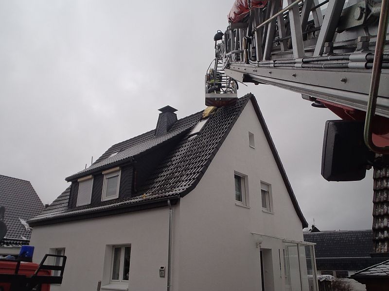 Um 9.00 Uhr wurden die Löschgruppe Hoppecke und die Drehleiter des Löschzuges Brilon zum Hängeberg am Freibad alarmiert. Dort war eine Fichte auf ein Wohnhaus gestürzt. Der Baum konnte in Zusammenarbeit mit dem Briloner Forstbetrieb entfernt werden. Daneben war die Zufahrtsstraße durch einige Bäume blockiert. Sie wurde vom Forstbetrieb geräumt. Zur Schadenshöhe liegen hier keine Angaben vor. 10 Feuerwehrleute waren über eine Stunde im Einsatz.